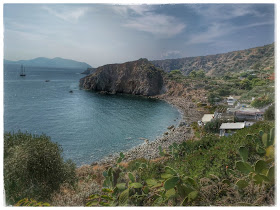 The first of the two islands we stopped at was Panarea. White houses dotted the landscape. The water is crystal clear blue..